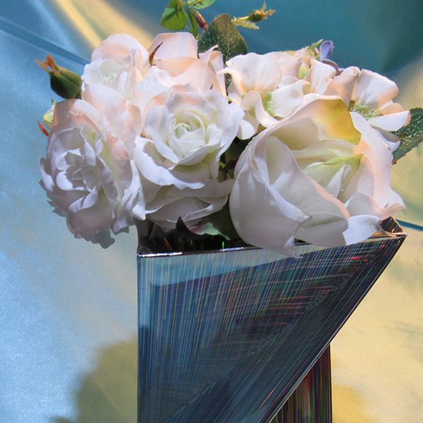 お世話になった方に花束を贈る際、ふとアイデアが湧きプライベートなギフト用にと制作したグランドピアノ型アレンジフラワー用トレー。キュート&ゴージャスな魅力に溢れる。