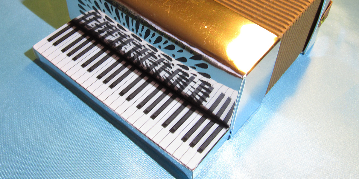 オリジナルのグランドピアノの屋根(蓋)の最長部はおよそ30cm×鍵盤の長さ20cm×トレイ部深さ5cmほどである。脚柱付モデルもある。完全プライベート用に生み出されたパッケージなので、用途によってはサイズもフルオーダーで制作可能。開け放たれた屋根からこぼれ出るアレンジフラワーが何とも愛らしく映る、特注トレイ型パッケージである。